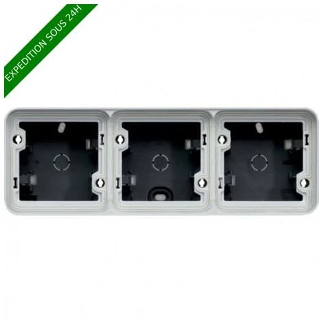 p>Boîte saillie triple horizontale vide Cubyko – composable – 3P – IP55 – gris Hager