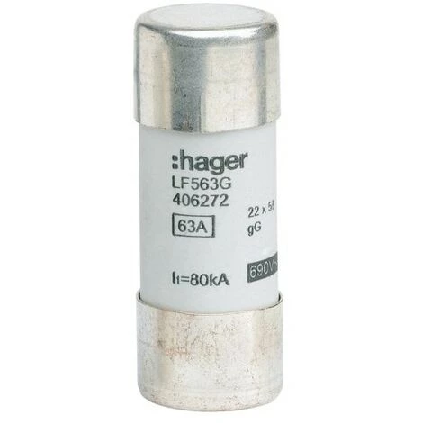 Cartouche fus.22×58 gG 63A – HAGER LF563G PROTECTION TERTIAIRE – C-C L51 – L58