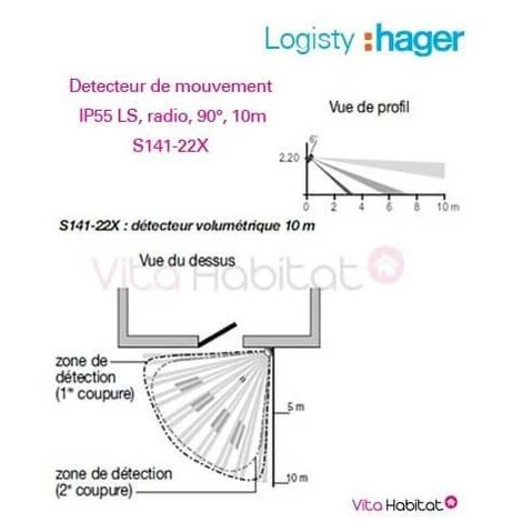 Détecteur de mouvement Logisty HAGER, angle 90° portée 10 m, S141-22X.
