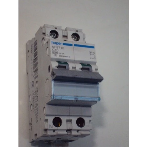 Disjoncteur 10A 1p+n 6/10ka 2 modules GROUPE HAGER NFN710
