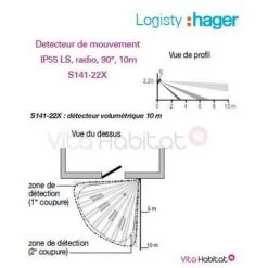 Détecteur De Mouvement 90°, 10m – IP55 LS – S141-22X – Radio Logisty Hager – Pile Lithium Fournie