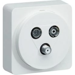 Prise TV+FM+SAT 1 Câble Coaxial Saillie Blanche Complète ATEHA HAGER WJC256