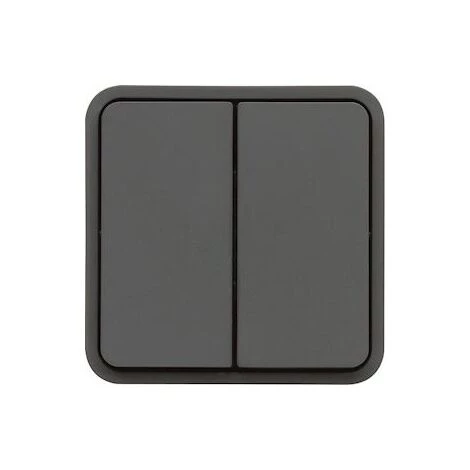 cubyko Double inter VV associable gris IP55 Mecanismes cubykoD’une conception et d’une ergonomie bien pensées, les interrupteurs et prises cubyko séduisent : une mise en œuvre simple, une étanchéité à toute épreuve (IP55) et une visibilité remarquable grâce à la collerette de LED (accessoire).