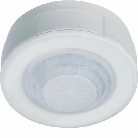Détecteur de mouvement et de présence par infrarouge 360º EE804A, de Hager. Le montage de ce détecteur se fait en surface. Avec une combinaison de détecteur de présence et de mouvement, il a une sensibilité de détection élevée dans la zone de détection de présence centrale. Le détecteur capte les mouvements thermiques effectués par les personnes, les animaux ou les objets grâce à sa technologie infrarouge passif (PIR). La luminosité de réponse et le temps de retard au déclenchement sont réglables. À une hauteur d’installation de 2,5 mètres, il détecte les mouvements d’un diamètre de 6 mètres. Grâce à la détection de présence, les mouvements minimaux sont détectés dans un diamètre de 4 mètres. La hauteur de montage recommandée est comprise entre 2,5 et 3,5 mètres. Efficace, le contact est robuste et est compatible avec les charges LED 230V. Par souci d’économie d’énergie, sa consommation en veille est très faible (0,3W). Avec classe de protection II et IP21.