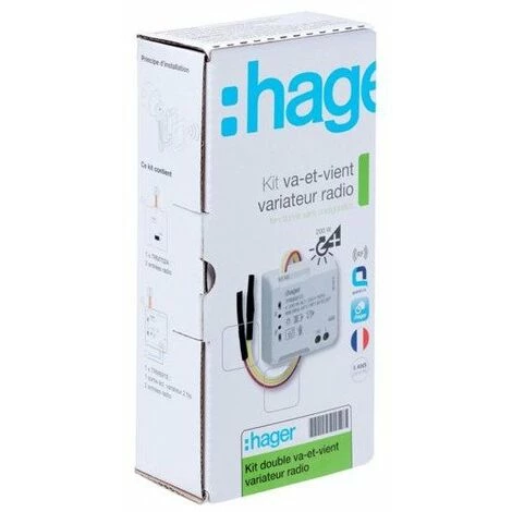 Kit radio va-et-vient avec variateur TRK151M contenant : – 1 micromodule sortie éclairage TRM691E- 1 micromodule 2 entrées pour contacts libres de potentiel TRM702A