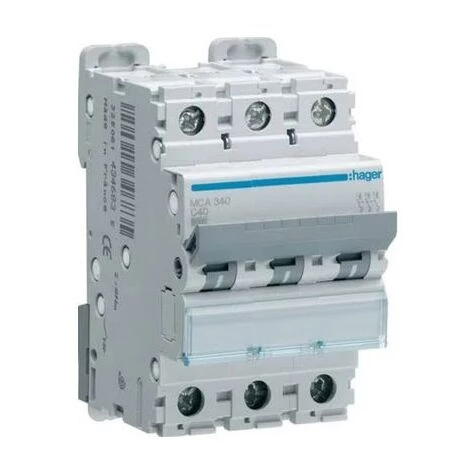 Nombre de pôles: 3P. Intensité: 40A. Courbe C. Pouvoir de coupure: 6/10kA. Dimensions(HxLxP): 83×52,5x70mm.