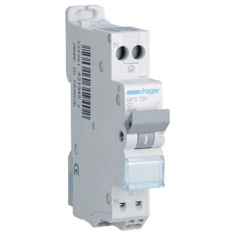 Nombre de pôles: 2P. Type de pôle: 1P+N. Courbe: C. Tension: 230V. Intensité: 1A.
