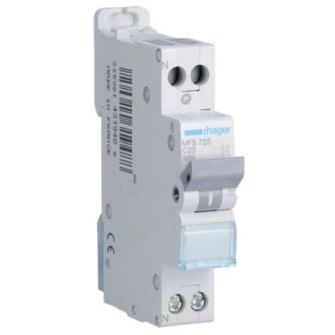 Type de pôles: 1P+N. Courbe: C. Nombre de modules: 1. Tension: 230/240V. Courant: 25A. Dimensions( HxL): 86 x 17,5mm