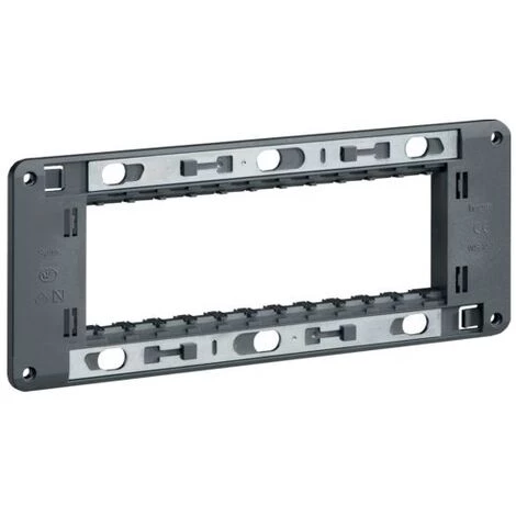 Support à vis 6 modules. Pour plaque triple Systo. Permet la fixation de 3 mécanismes de 2 modules. Entraxe de fixation: 57mm. Sens de montage: Vertical. Dimensions: 187x74x11,3.