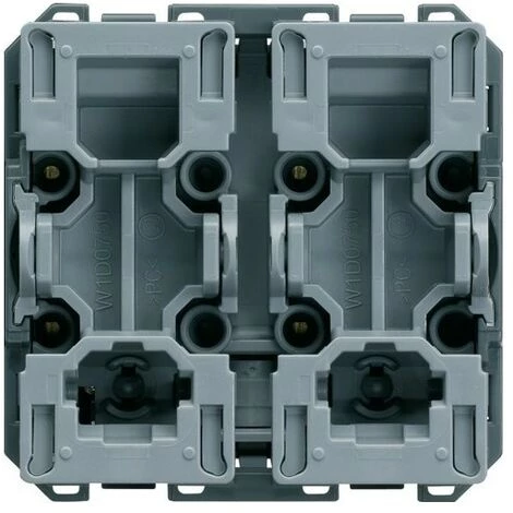 Gallery : Interrupteur va et vient, ou bouton poussoir, livré sans support, sans enjoliveur et sans plaque de finition. Tension nominale : 250 volts. mode de pose : encastré. mode de fixation : enclipsé sur support. Format : 45×45. Profondeur : 34 mm. type de connexion : borne automatique Quickconnect. Va et vient : 10 ampères