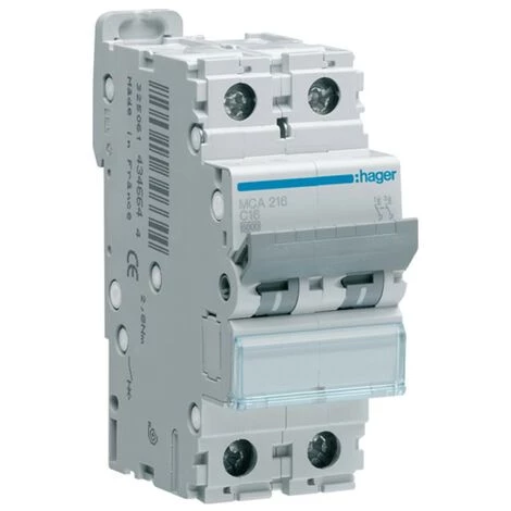 Interrupteur magnétothermique Hager 2P 16A 6 KA C 2 modules MCA216