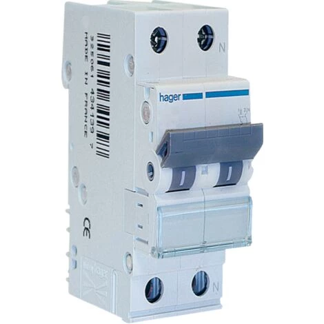Interrupteur magnétothermique Hager 2P 25A 4.5 KA C 2 moduliMYN225