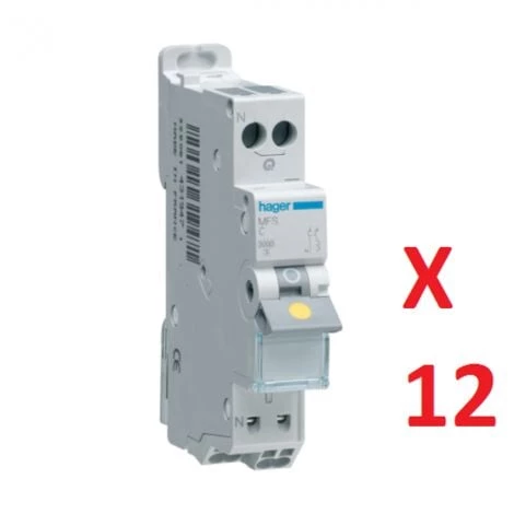 Le Lot de 12 Disjoncteur Bipolaire 10A Phase+Neutre Sans Vis HAGER MFS710-12 est conçu pour protéger un circuit électrique des surcharges et des courts-circuits. Il possède un pouvoir de coupure nominal de 3000 A. Vous pouvez l’utiliser pour un circuit électrique d’une intensité maximale de 10 A avec par exemple des appareils divers, convecteurs ou panneaux radiants en monophasé, etc. Ce disjoncteur 10 A se raccorde sans vis.