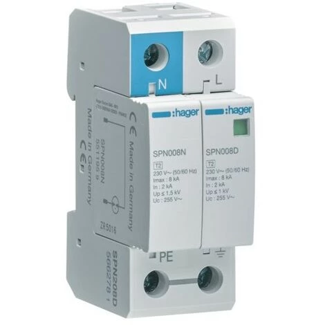 Parafoudre 2P débro 8kA voy. – HAGER SPN208D PROTECTION TERTIAIRE – PARAFOUDRES