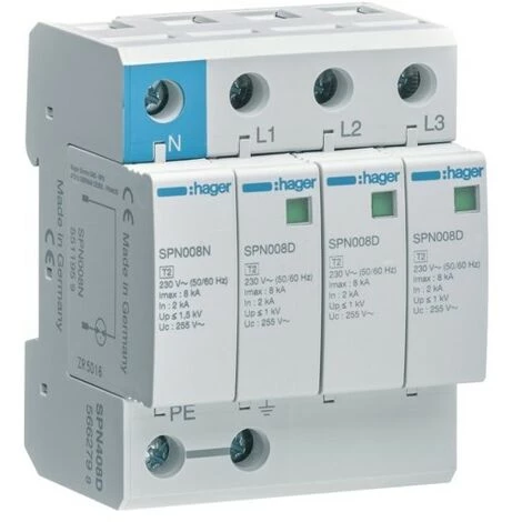 Parafoudre 4P débro 8kA voy. – HAGER SPN408D PROTECTION TERTIAIRE – PARAFOUDRES