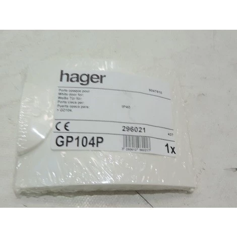 Porte opaque blanche pour coffret de répartition plastique 4M GD104 (non incl) HAGER GP104P