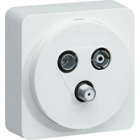 Prise TV+FM+SAT 1 câble coaxial saillie blanche complète ATEHA HAGER WJC256